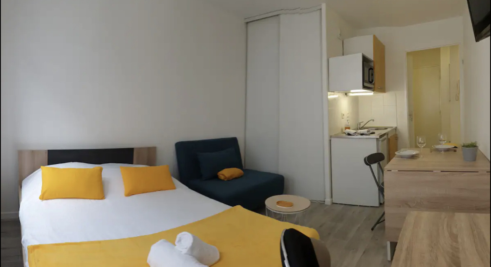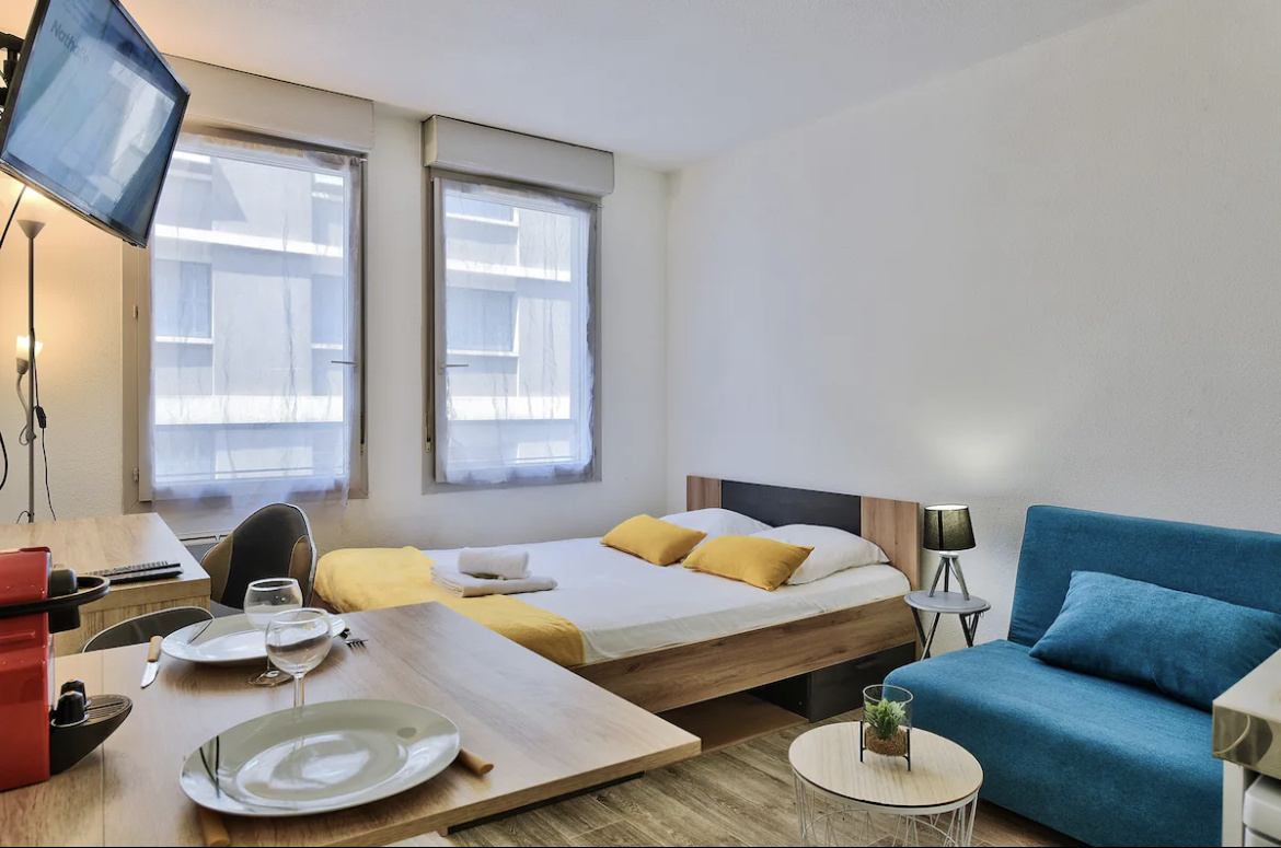 Studio neuf, meublé et équipé d'environ 20m² dans une résidence pour étudiants, stagiaires, et actifs.